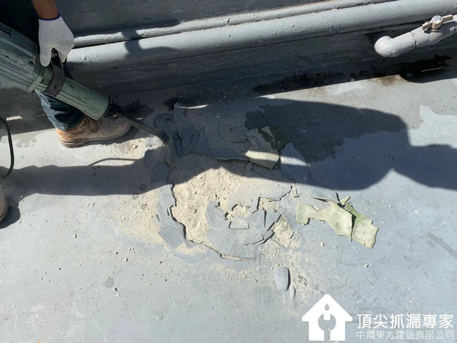 接下來將早期前手廠商做失敗的屋頂地坪打除至結構止,