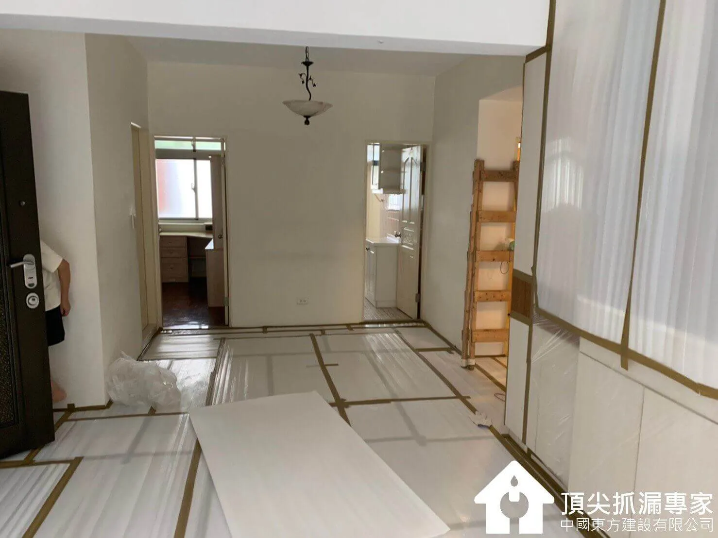 首先我們於屋主室內施工前進行前置保護作業,