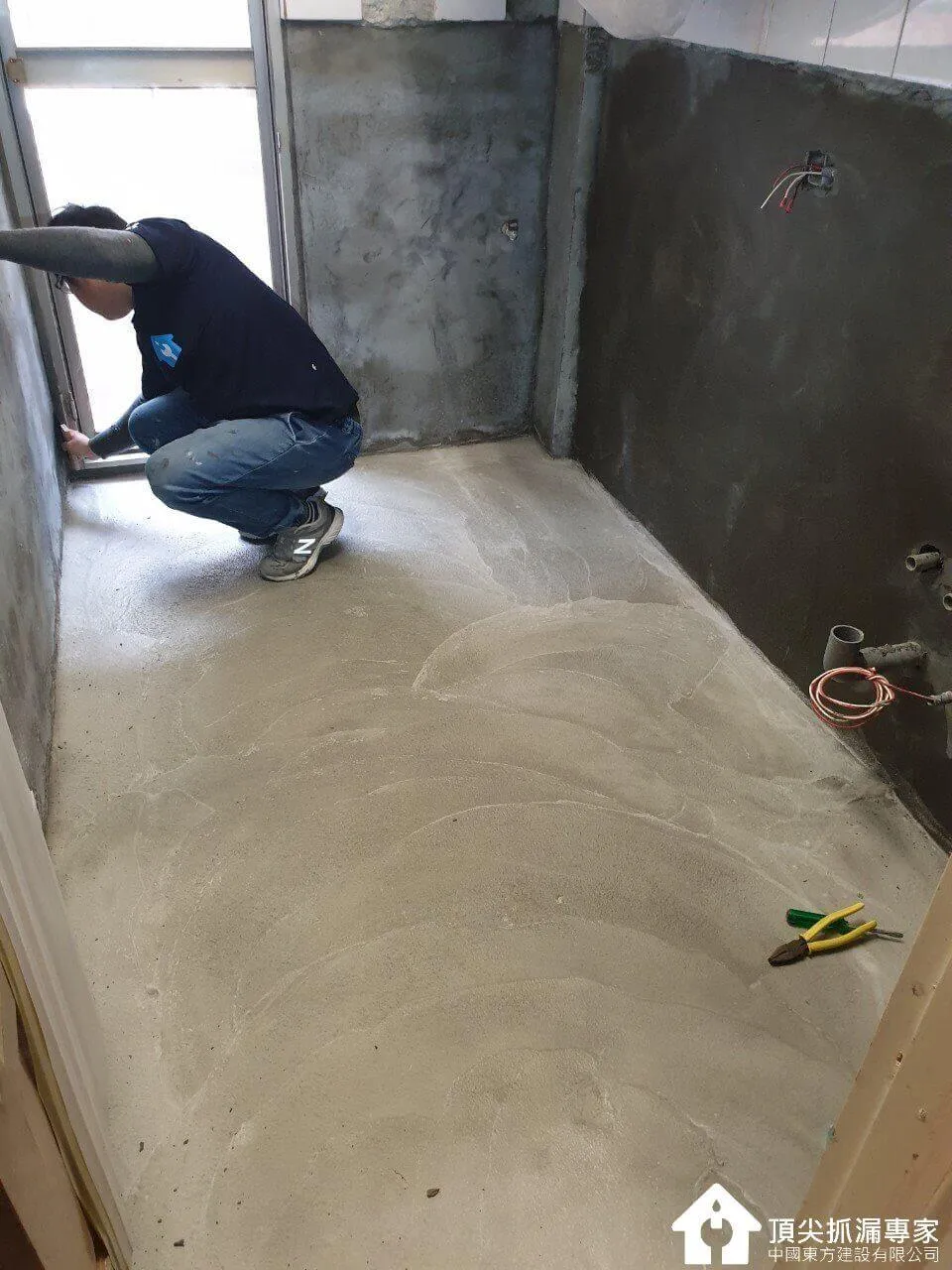 新安裝管線確認都正常後開始上第一層水泥,