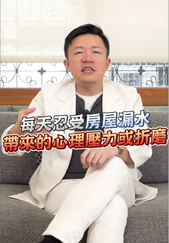 每次下雨你都要擔心牆角是否又變濕,或者天花板是否再度滲水,居住品質嚴重受影響。