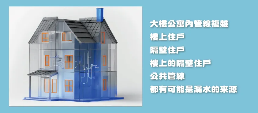 漏水的原因,主要來自管線問題或建築結構損壞。